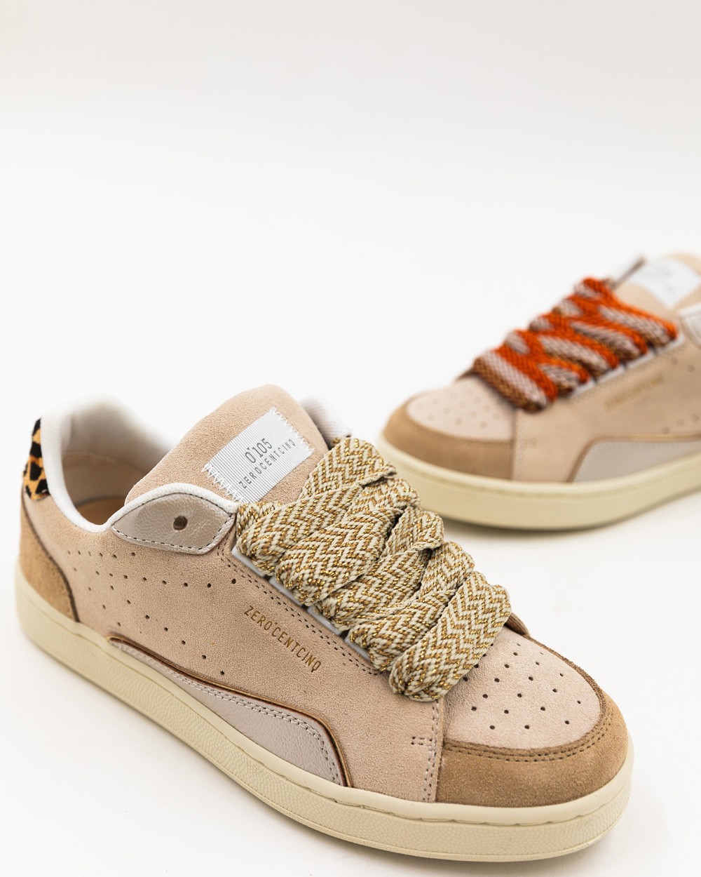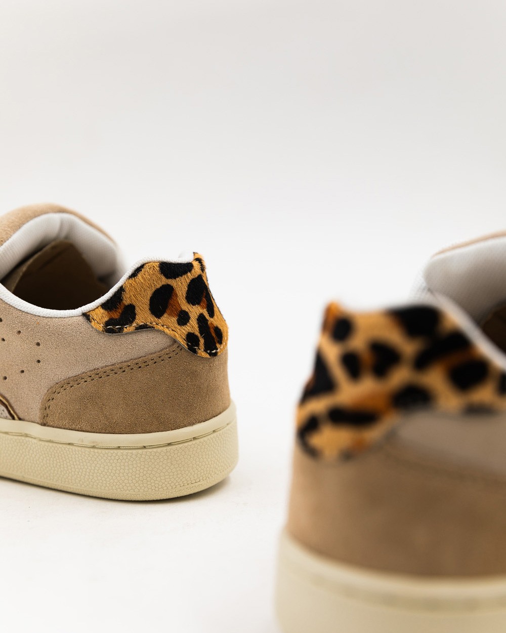 Enter the season with boldness and refinement thanks to this version of our Avril model. It features a soft, sophisticated light-brown suede design, contrasted by a touch of leopard-print leather, for an irresistible feline touch. Chunky braided laces add a unique textured dimension, fusing comfort and style into a harmonious whole. Perfect for adding a touch of wild elegance to your outfits, they are ideal for pairing with wide-leg pants or casual pieces for a casual yet refined look. Adopt them and let your steps express your whole personality.