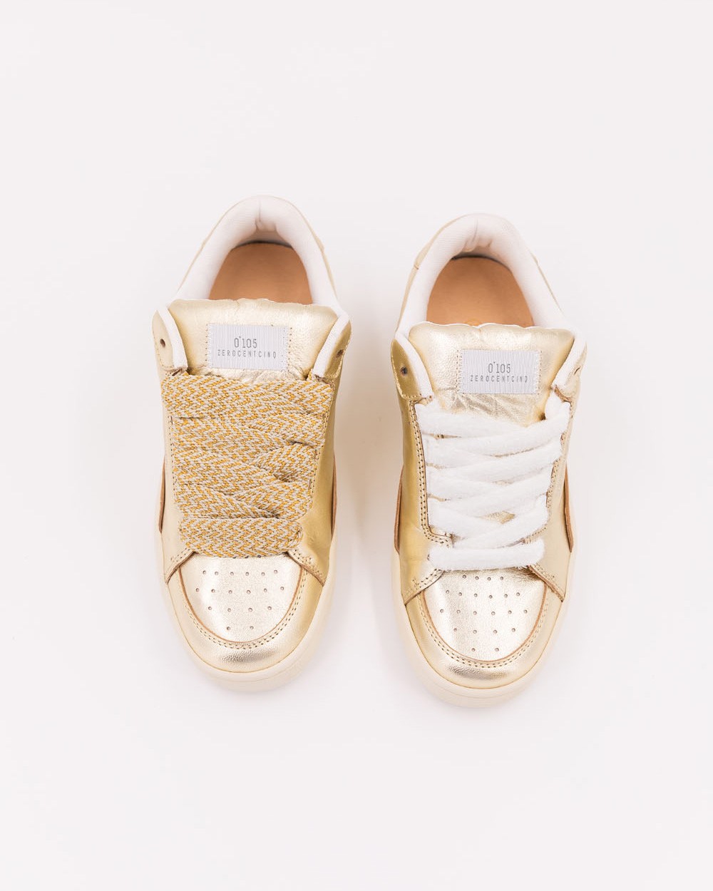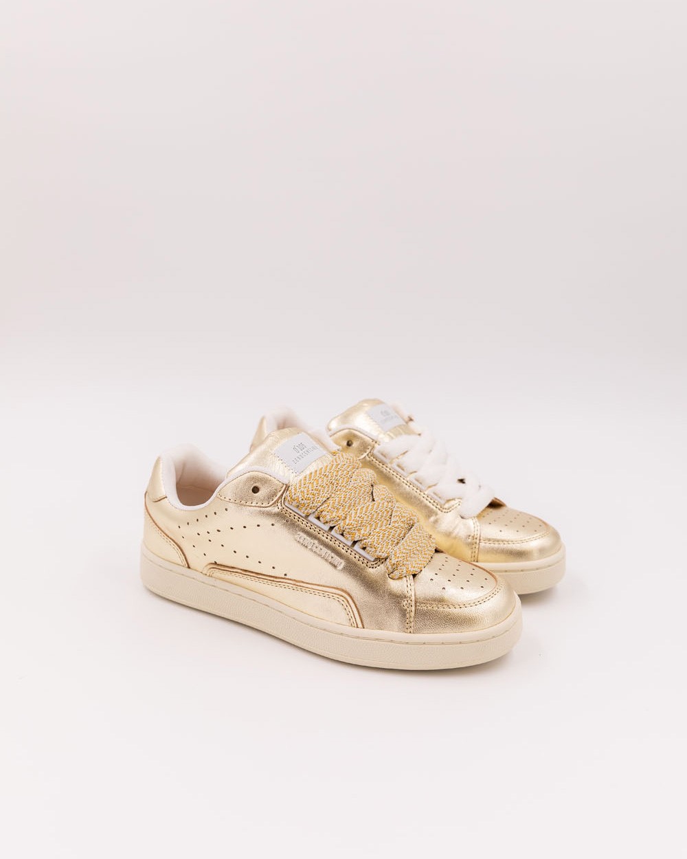 Its design, inspired by skate culture and subtly reimagined, offers you an elegant and comfortable sneaker. With its full metallic gold look, this bold shoe stands out while remaining refined. The white terry laces add softness and lightness, harmoniously complementing the golden shine. Perfectly balanced between minimalism and originality, it is ideal for those who want to stand out with elegance in their everyday urban life.