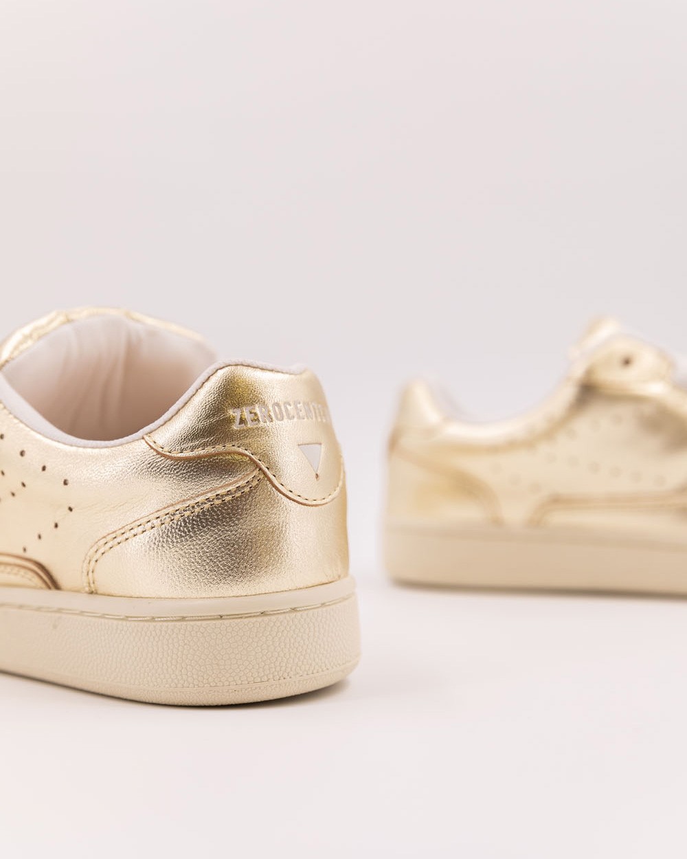 Metallic gold low-top sneaker.