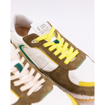 - 2 sets of laces : Striped neon yellow & white and beige.