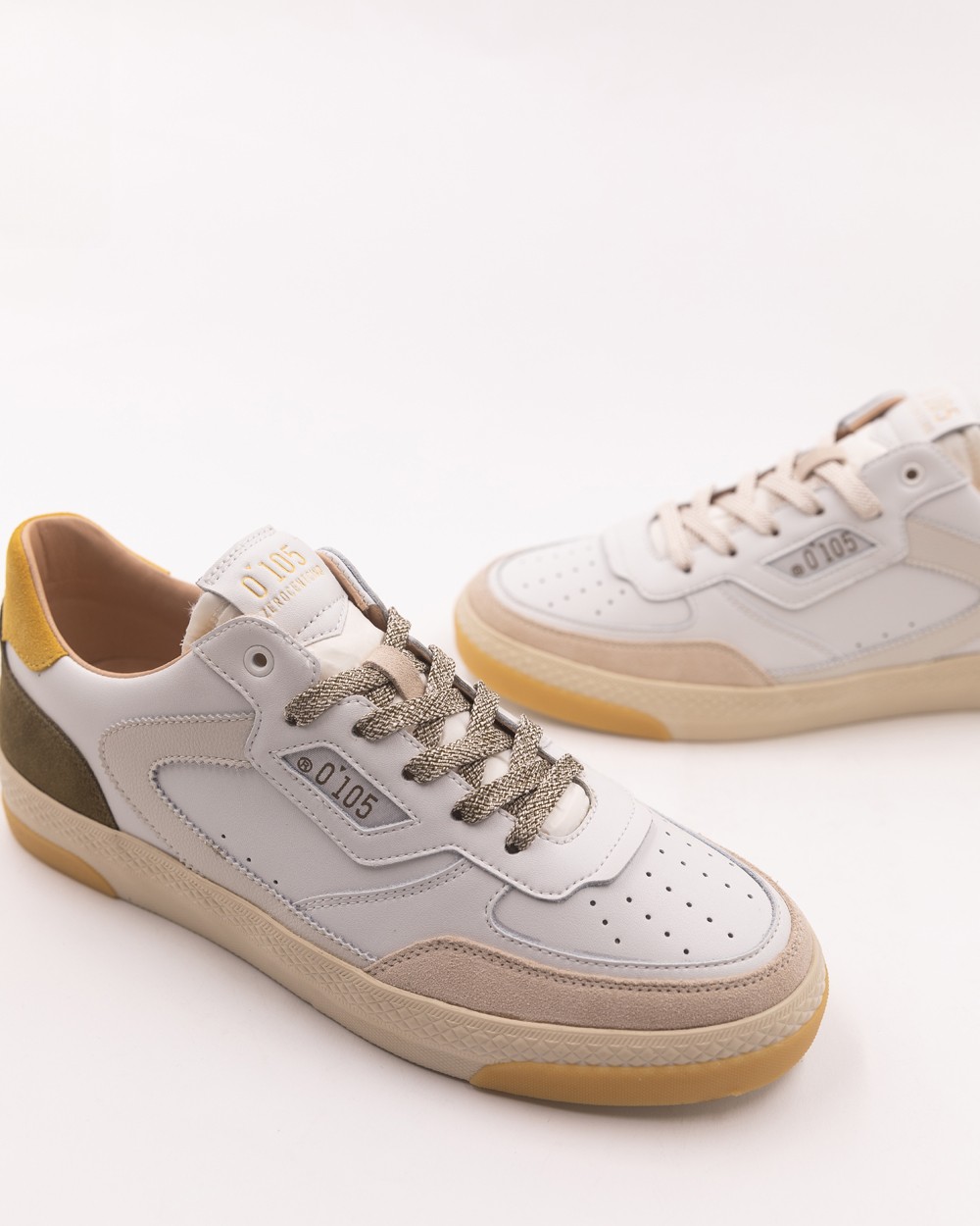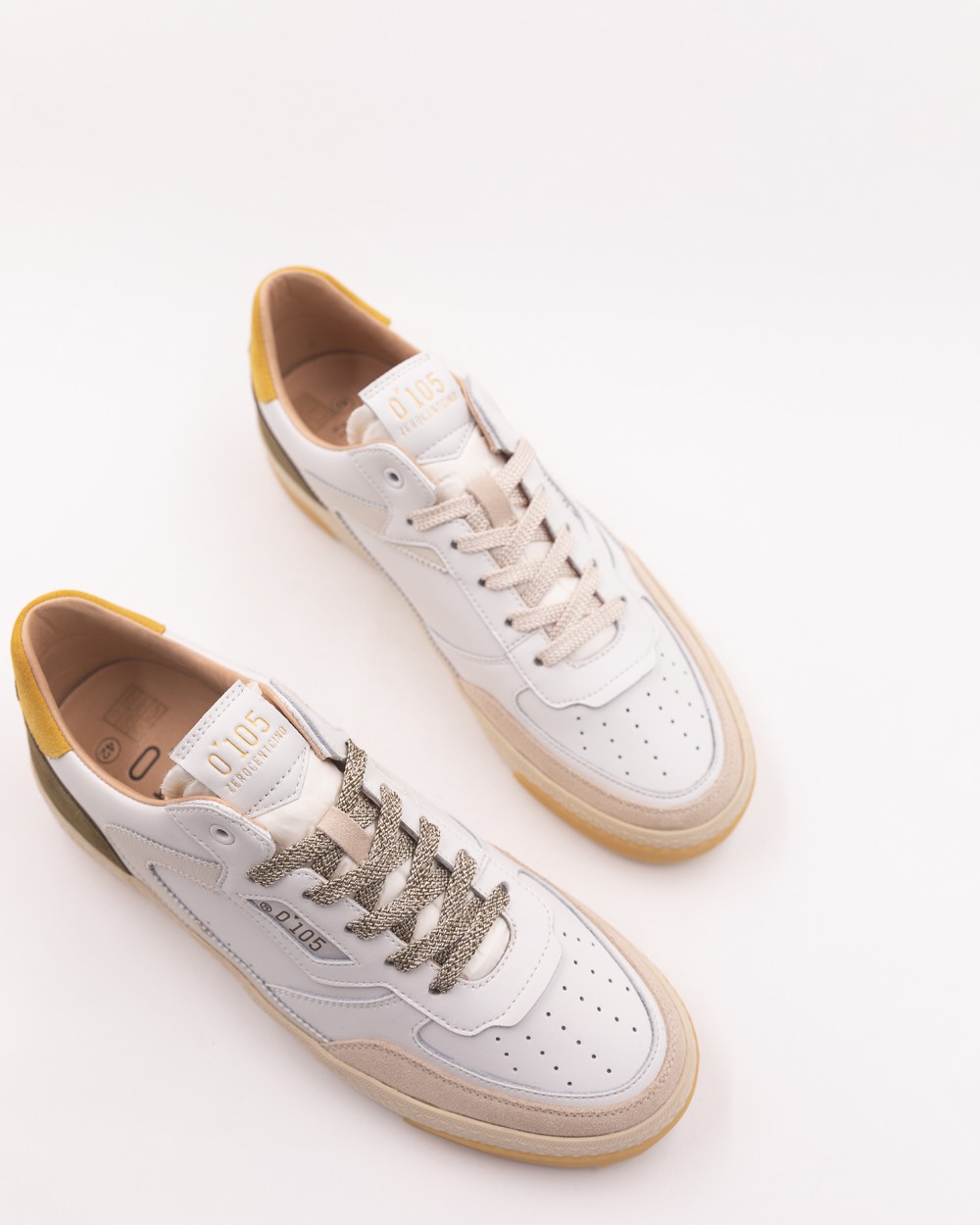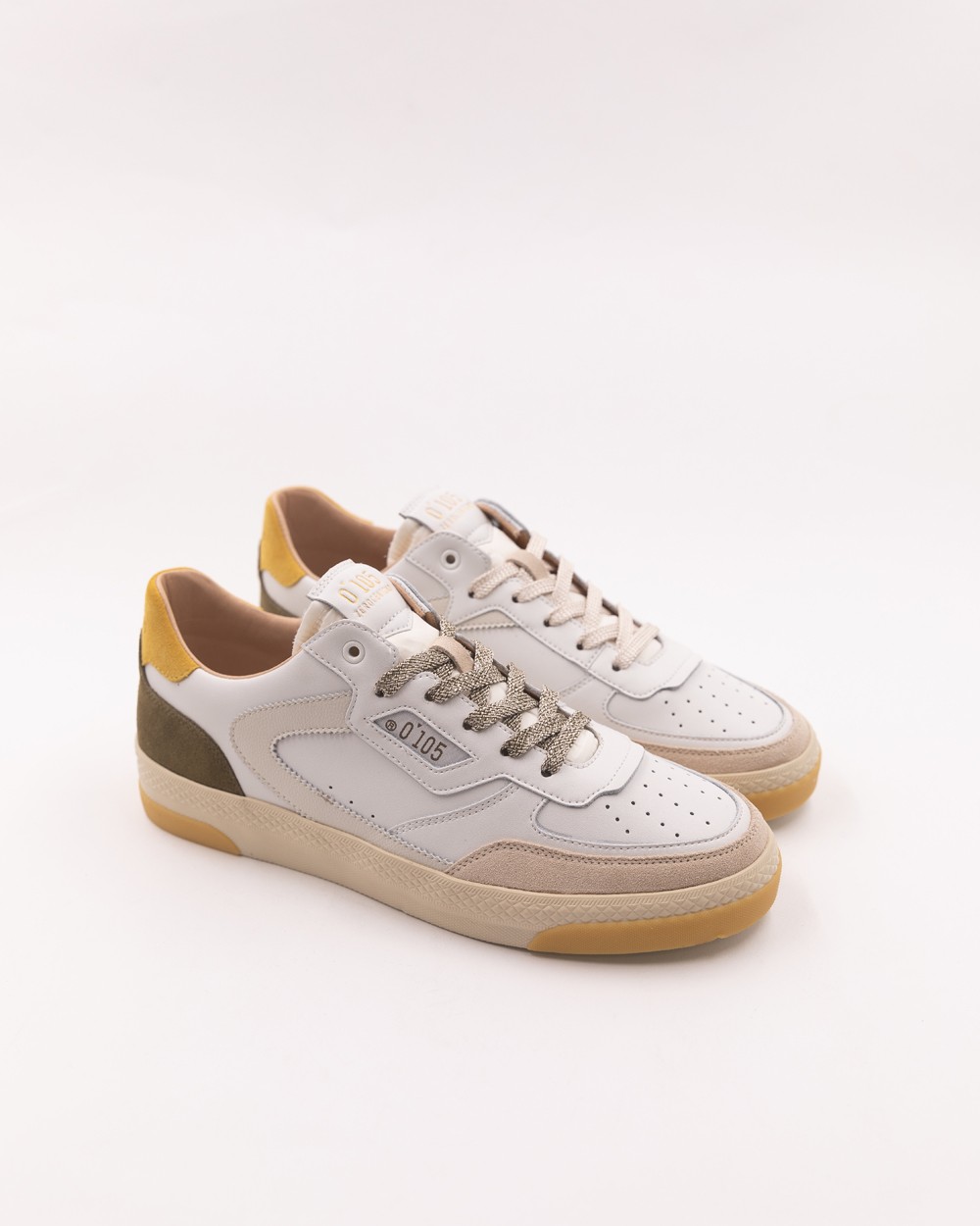 Zapatilla baja blanca, amarilla y marrón