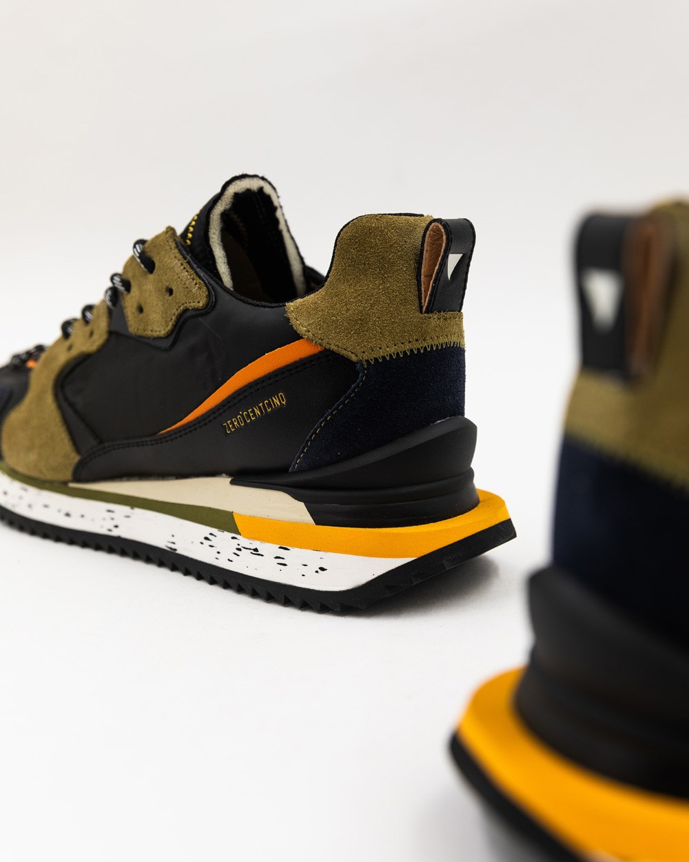 El modelo Trek-Up hace su debut en la colección de hombres. Fuerte y singular con sus líneas inspiradas para outdoor, el Trek-Up es el par que combina a la perfección confort y estilo. Esta versión se distingue por la audaz combinación de ante kaki y cuero liso color naranja, que iluminan elegantemente la base negra. Asócialo con unos pantalones con pinza para un look elegante o uno jean rectos para el día a día.