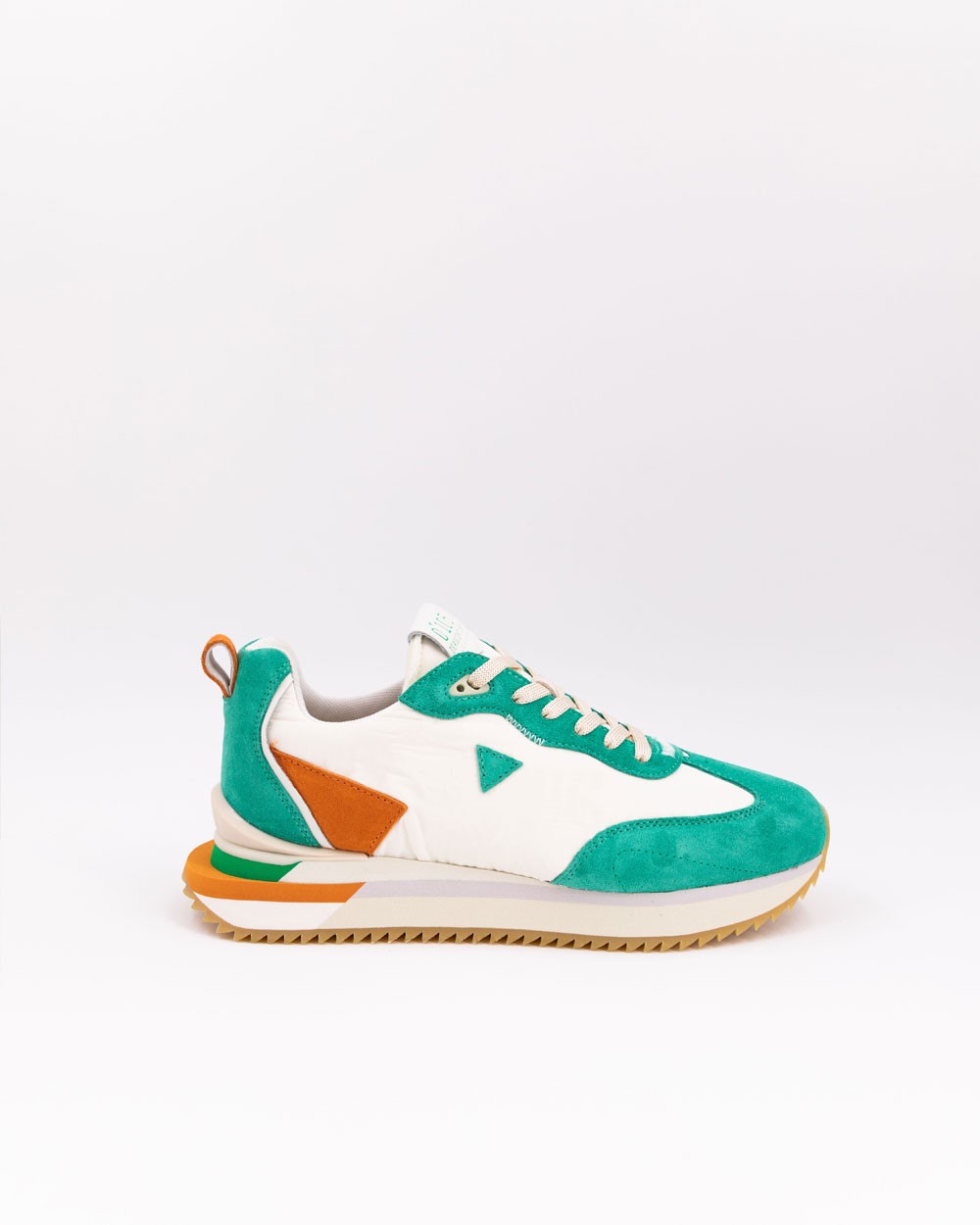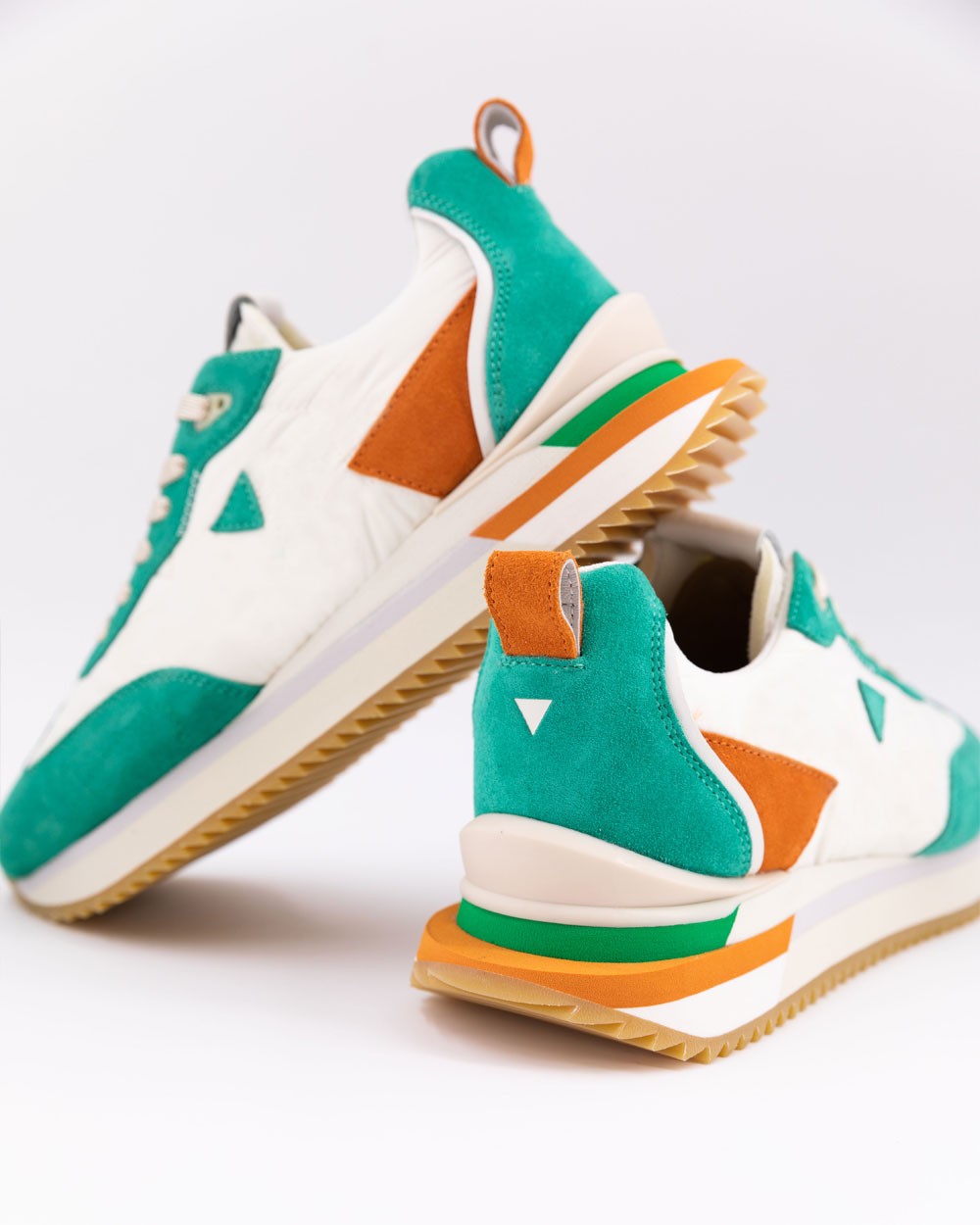 Une paire au teintes franches inspirée des codes couleurs universitaires américain. Jogging et veste de baseball pour un total look ou jean et T-shirt pour une combine plus sobre mais terriblement efficace.