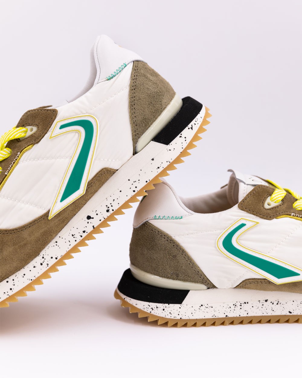 Un modèle qui ne manque pas de caractère avec ses nombreux détails tel que ses piqûres zig zag contrastantes, sa semelle mouchetée, son boomerang moulé tri-color et ses lacets rayés. Un style unique qui réhaussera vos looks du quotidien.