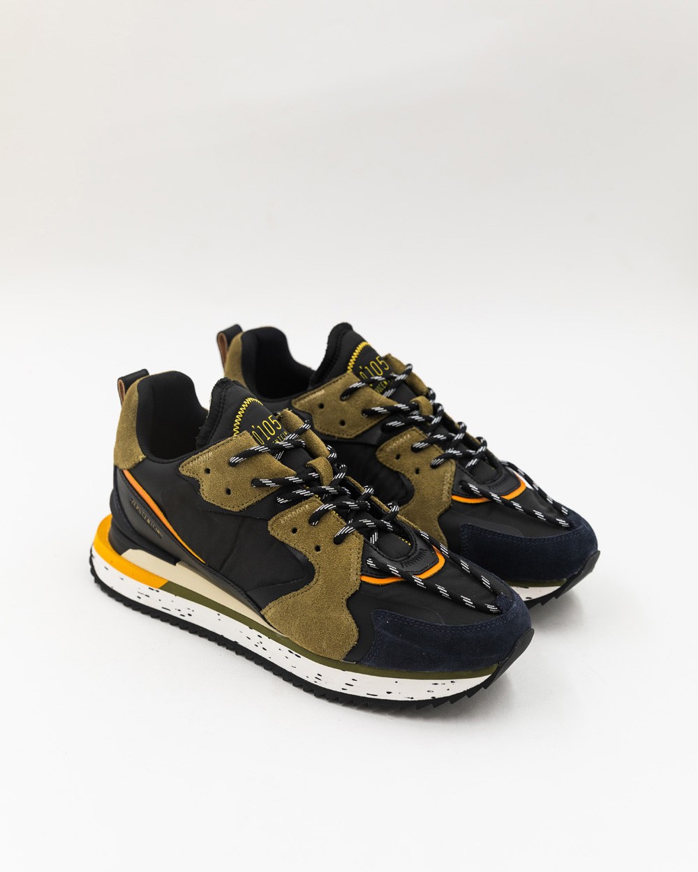 Le modèle Trek-up fait son arrivé dans la collection homme. Forte et singulière avec ses lignes outdoor, la treck-up est la paire qui allie à merveille le confort et le style. Cette version se distingue par l'association audacieuse de suède kaki et de cuir lisse orange, qui illuminent élégamment la base noire. Associez-la avec un pantalon à pince pour un look habillé ou un jean droit pour le quotidien.